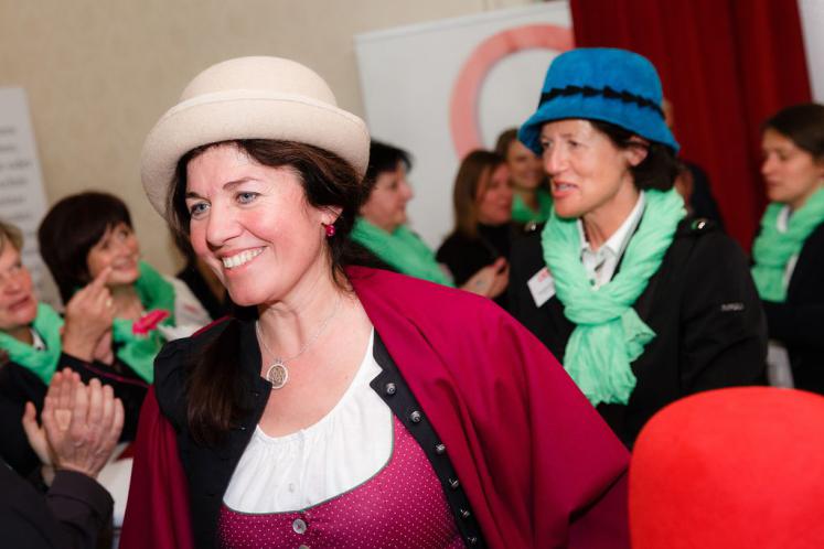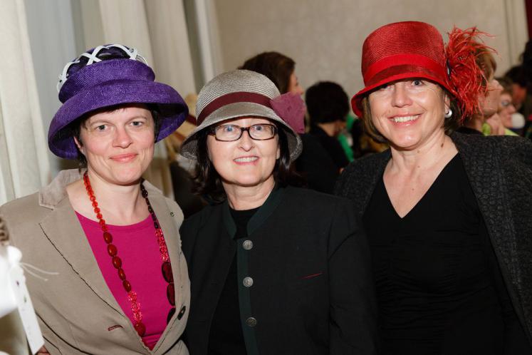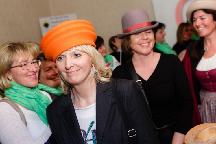 Nach einer kleinen Stärkung war der offizielle Teil des Abends beendet, und die Hüte konnten nach Herzenslust probiert werden. So war es dann auch – die Hüte flogen nur so von Kopf zu Kopf, keiner wurde ausgelassen. Es war eine Freude zu sehen, wieviel Spass die Damen hatten, die Lust sich im Spiegel immer wieder neu zu entdecken, das Strahlen darüber, eine neue Persönlichkeit zu zeigen!